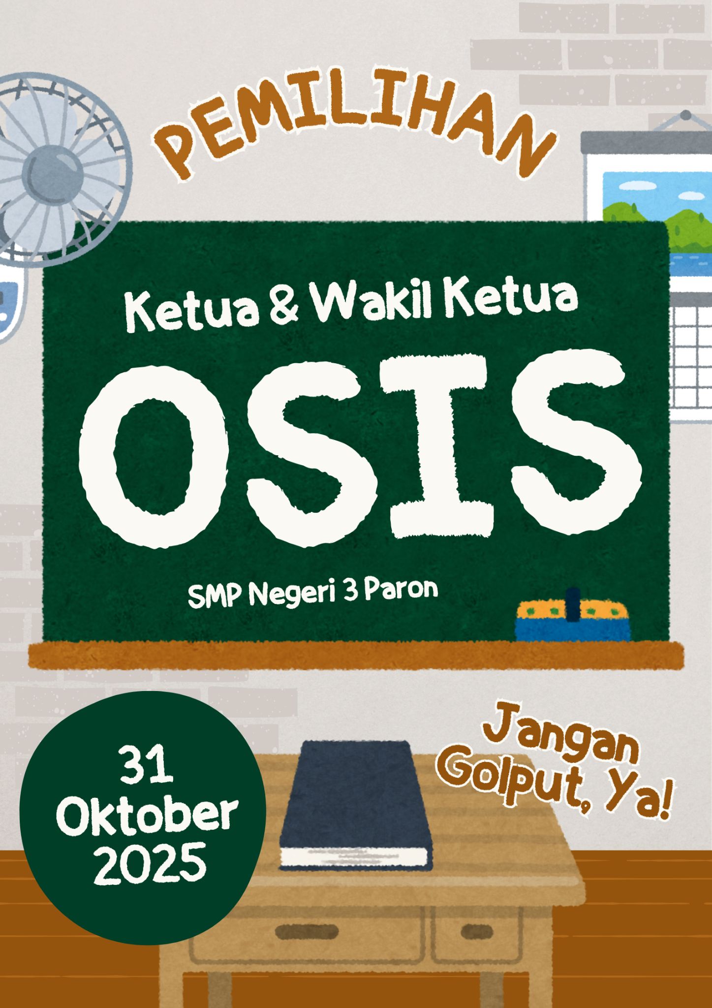 SETIAP SISWA HANYA MEMILIH SATU PASANGAN CALON. PILIH SESUAI HATI NURANI. VOTING DITUTUP PUKUL 09.45 WIB